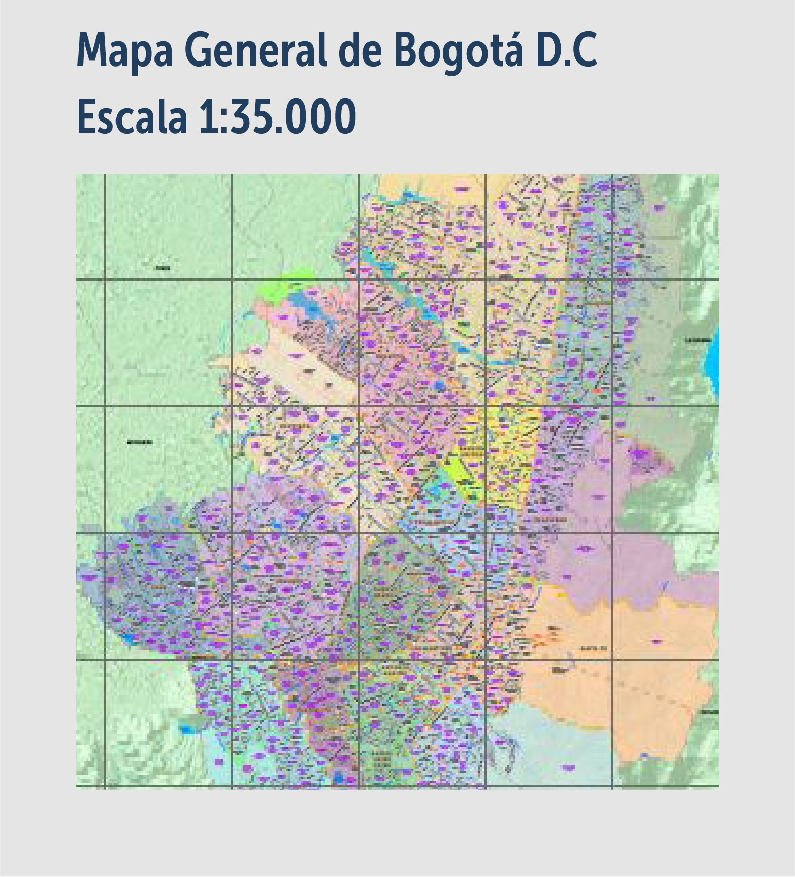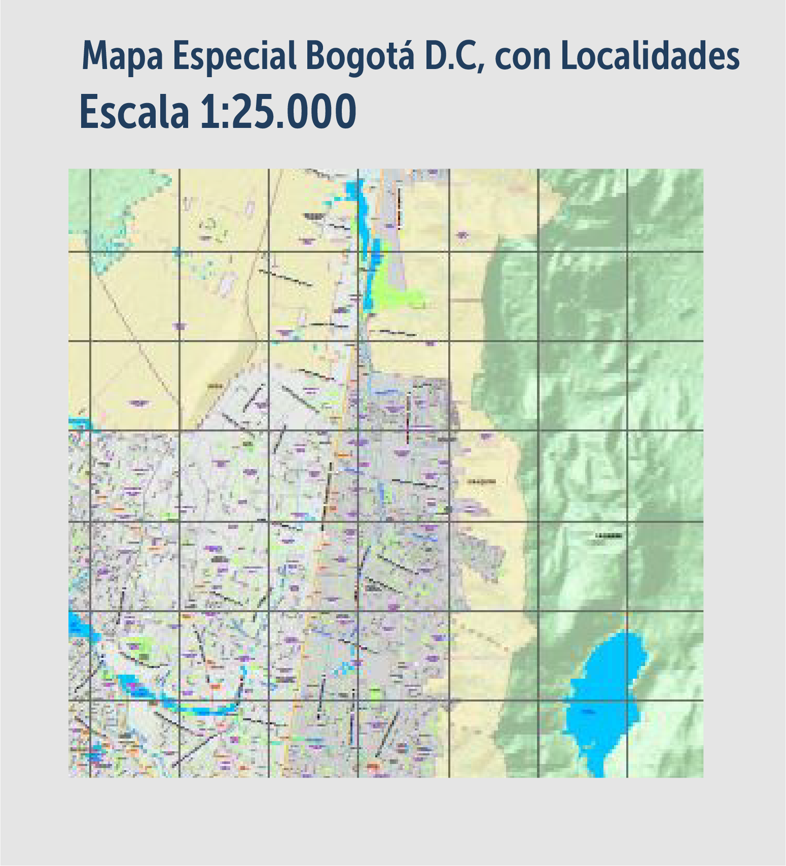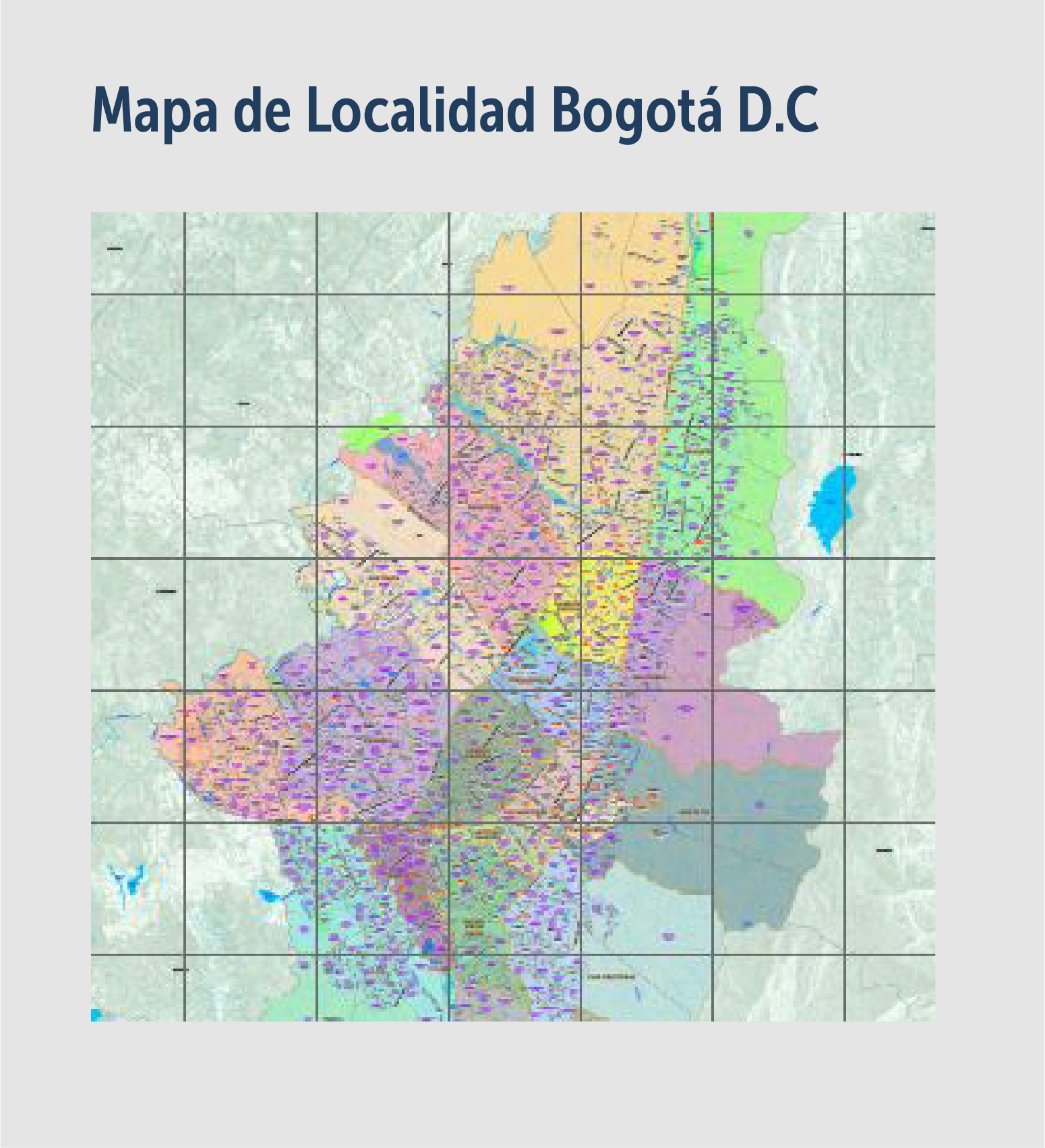 Mapa temático que representa la división del área urbana en localidades sin incluir Sumapaz